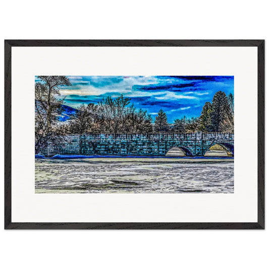 Yellowstone Street Bridge Winter '23; Livingston, Montana Premium Wooden Framed Print With Museum-Quality Matte Paper