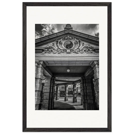Ying & Yang; Train Depot, Livingston, Montana Black & White Premium Wooden Framed Print w/ Museum-Quality Matte Paper