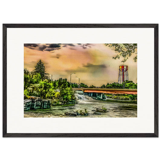 Water Tower & the Snake River; Idaho Falls, Idaho Premium Wooden Framed Print With Museum-Quality Matte Paper