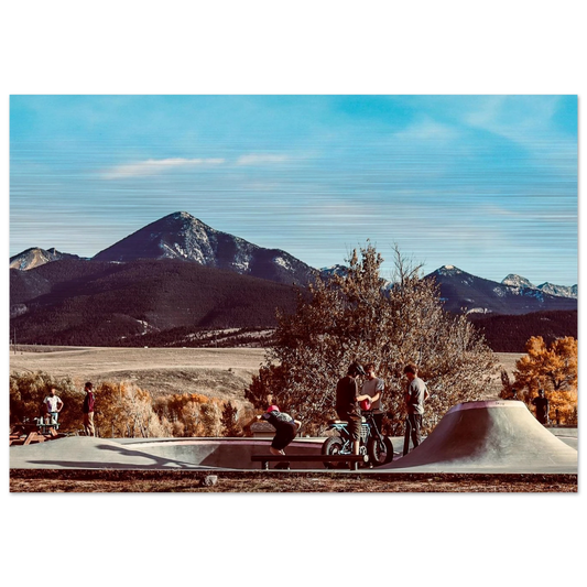 Skate Park & Mountains; Livingston, Montana Brushed Aluminum Print
