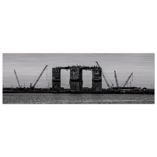 Decommissioned M.O.D.U.; Port Aransas, Texas Black & White Brushed Aluminum Print