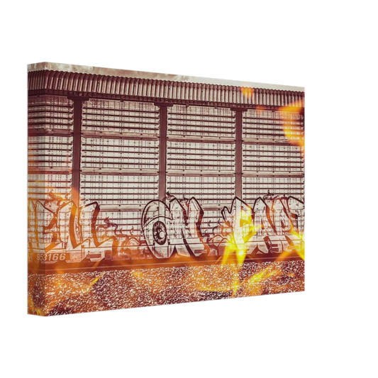"Hell on Earth" w/ Fire; Train Car Graffiti, Livingston, Montana Canvas