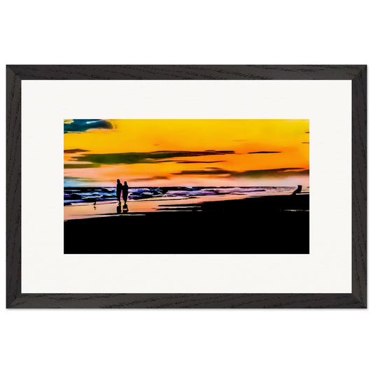 Sunset Walk; Port Aransas, Texas Premium Wooden Framed Print With Museum-Quality Matte Paper