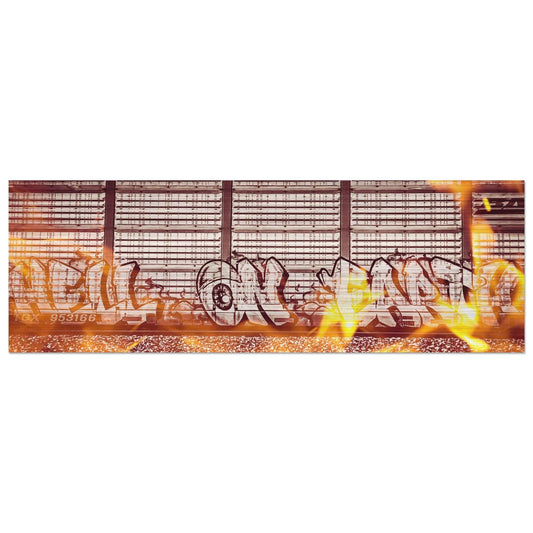 "Hell On Earth" W/ Fire; Train Car Graffiti, Livingston, Montana Brushed Aluminum Print