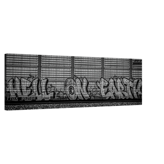 "Hell On Earth;" Train Car Graffiti, Livingston, Montana Black & White Canvas