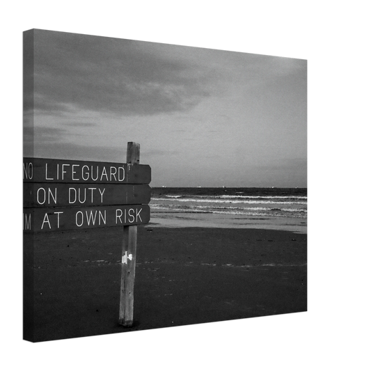 "No Lifeguard On Duty;" Port Aransas, Texas Black & White Canvas