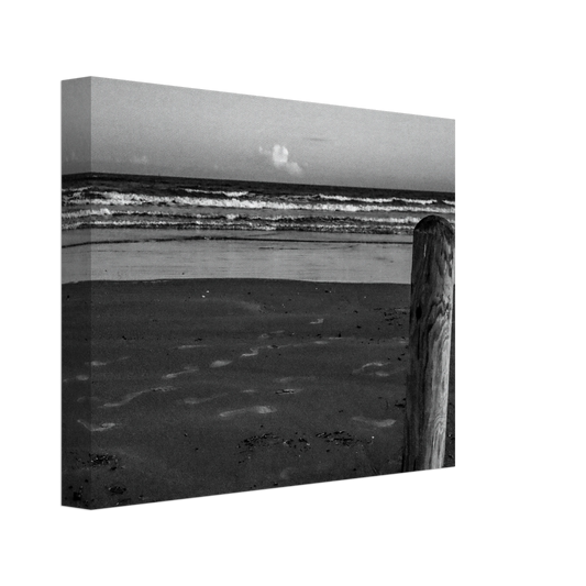 Ocean Beach W/ Wooden Post; Port Aransas, Texas Black & White Canvas