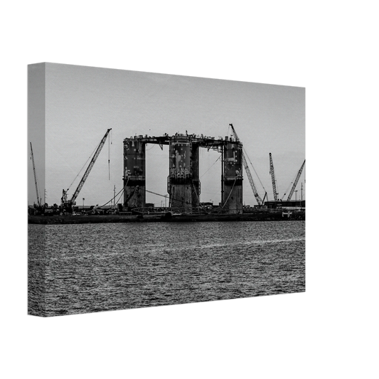 Decommissioned M.O.D.U.; Port Aransas, Texas Black & White Canvas